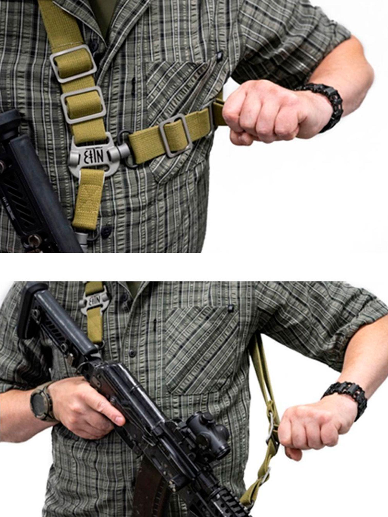 Может быть одноточечным и двухточечным. Для перехода на одноточечный вариант, подсоедините быстросъёмную антабку к кронштейну с руной «Зенитка».