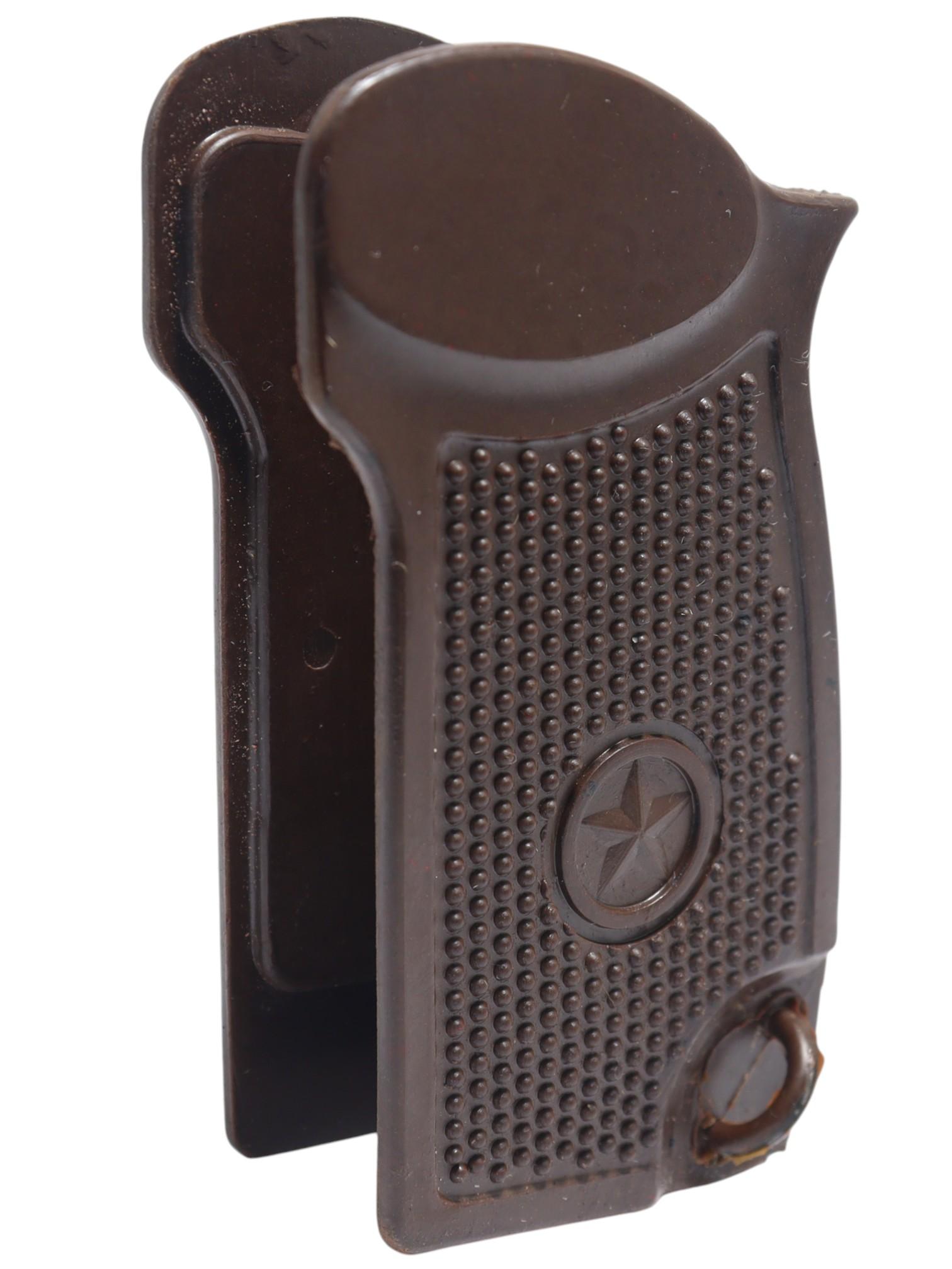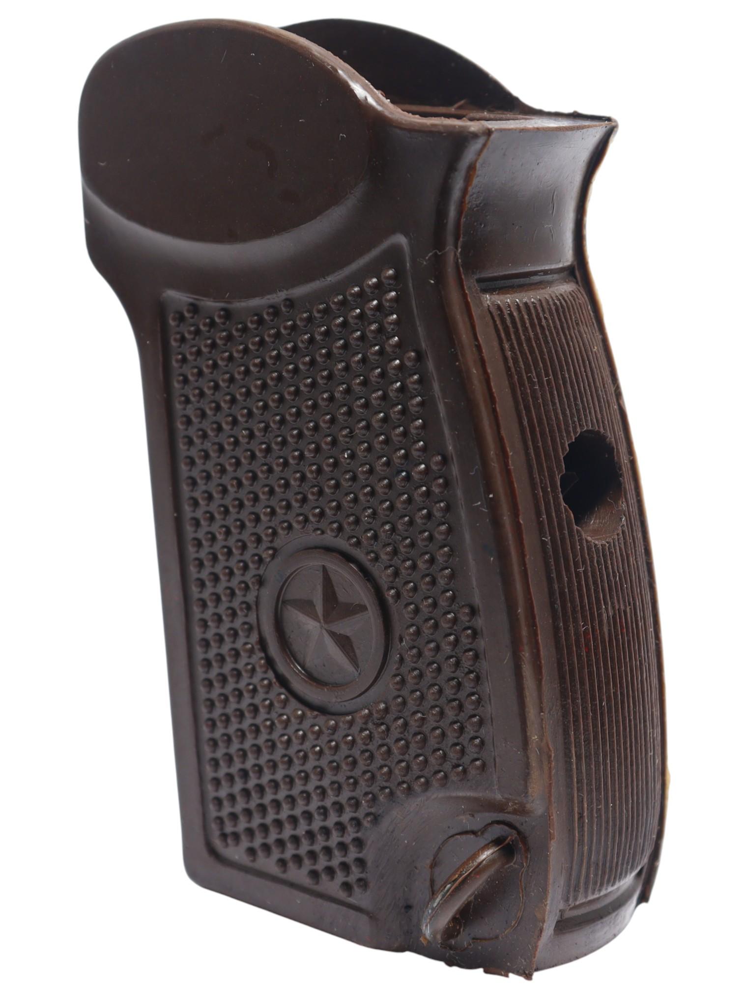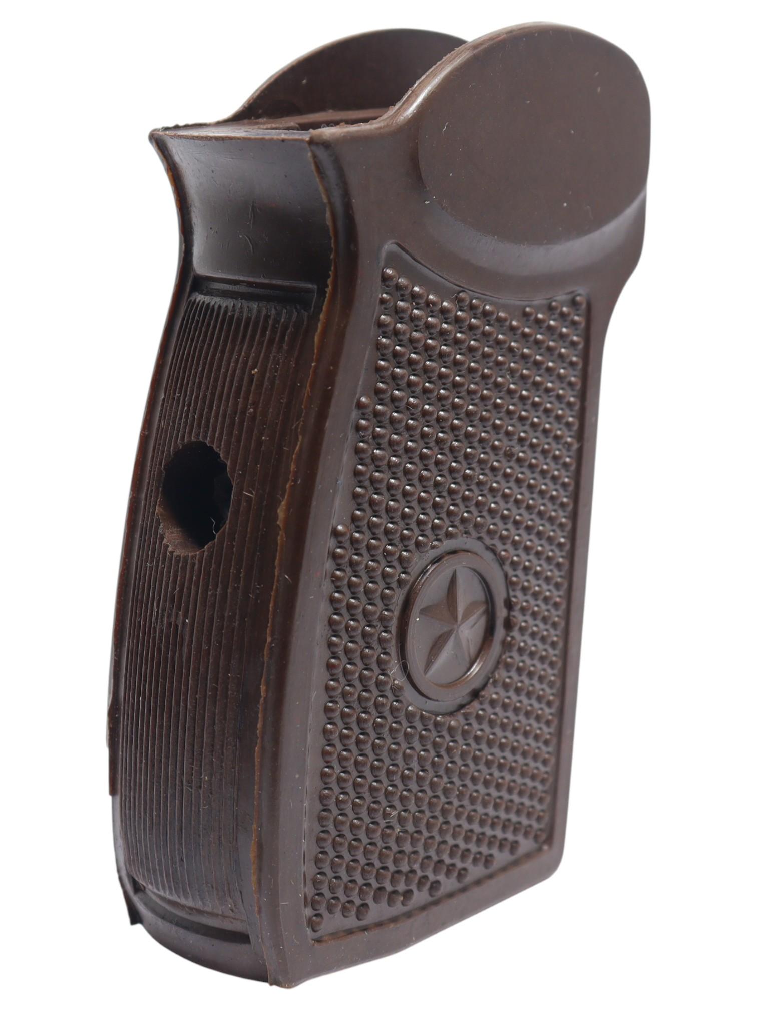 ПМПистолетная рукоятка для пистолета ПМ, прорезиненная, коричневая.