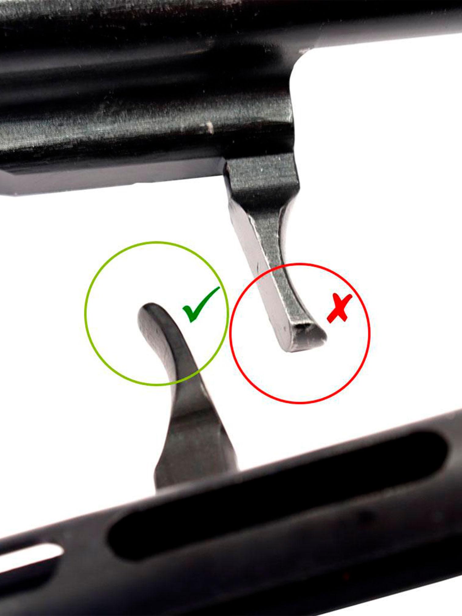 Помимо того, что установка новой накладки стала проще и занимает меньше времени, необходимо отметить надёжность конструкции — фактически она не отличается от штатной рукояти затвора. Вместе с тем увеличенная площадь позволяет удобно производить перезарядку слабой рукой и рукой в перчатке.