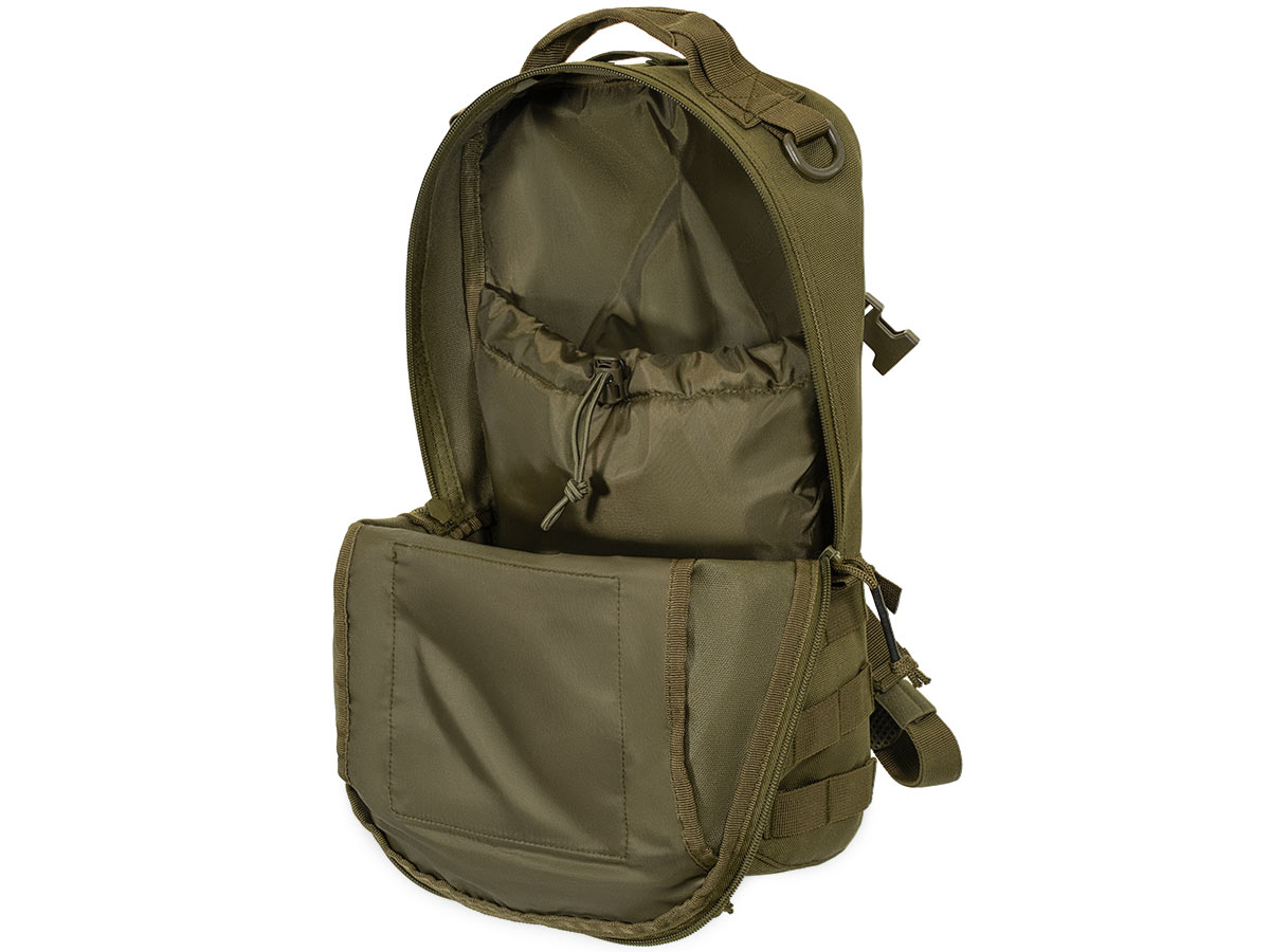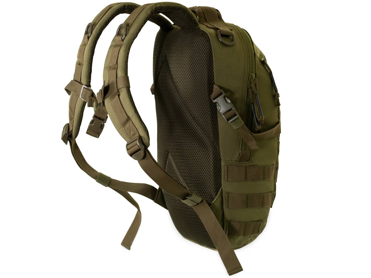 Основное отделение позволяет разместить ноутбук в специальном отсеке с утяжкой, а также, при желании в нём можно разместить питьевую систему (гидратор) с выходом под ручкой для переноски. Система MOLLE на передней и боковых сторонах обеспечивает возможность крепления дополнительного снаряжения. Благодаря регулируемым плечевым ремням, которые можно настроить под себя, рюкзак обеспечивает максимальный комфорт и равномерное распределение веса даже при длительных нагрузках, чему также способствует нагрудная поддержка с фастексом.