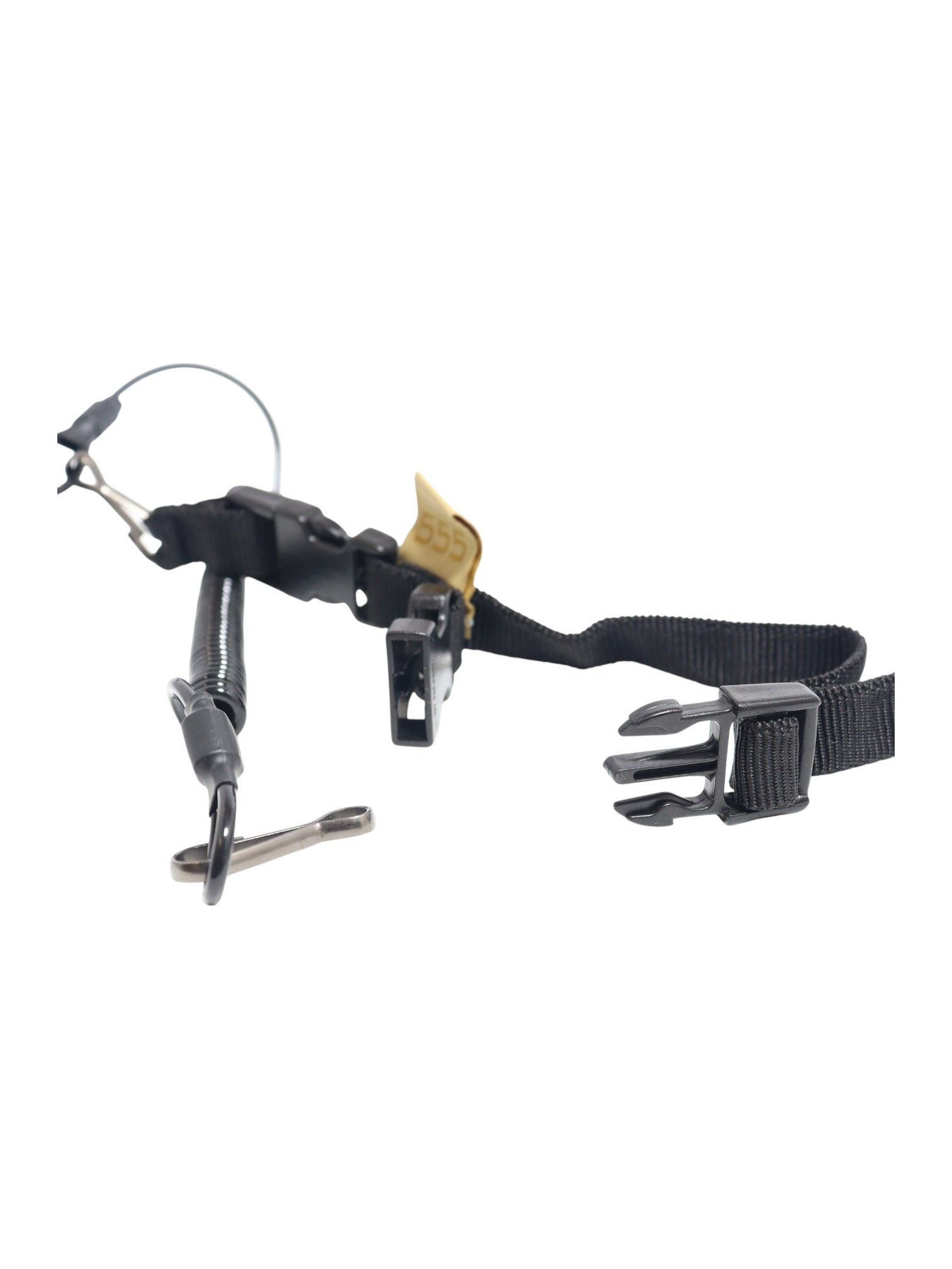 Фурнитура включает два прочных пластиковых фастекса, обеспечивающих лёгкое и быстрое отсоединение, а также металлический карабин для надёжного крепления к оружию, снаряжению или экипировке. Карабин выполнен из прочного металла и выдерживает высокие нагрузки, исключая случайное расстёгивание.