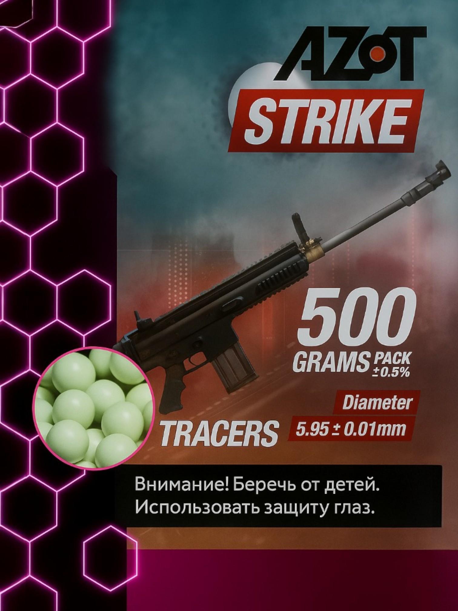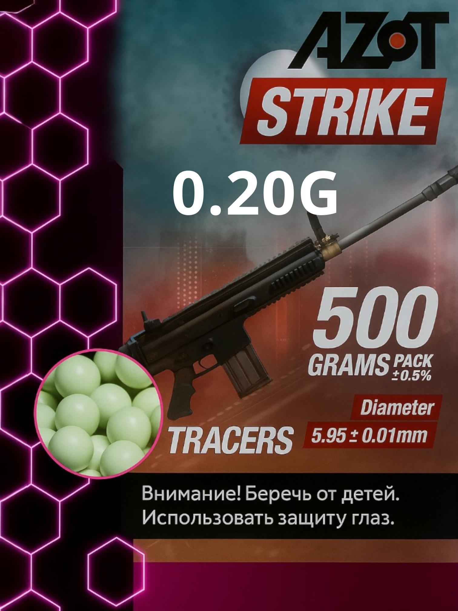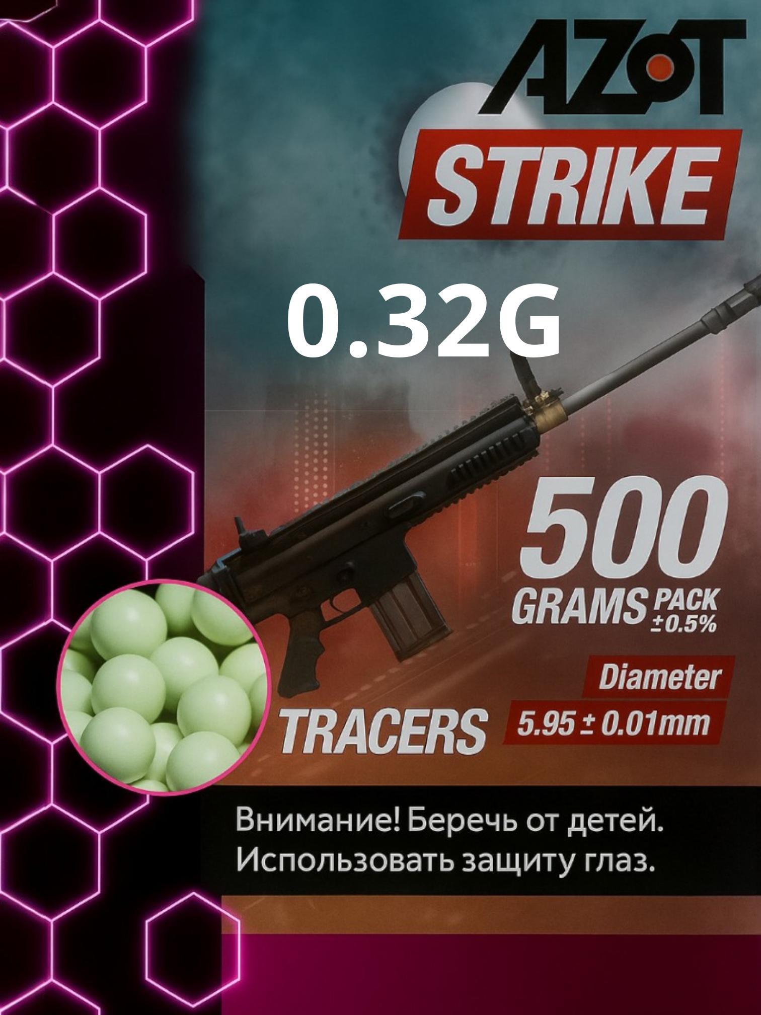 Страйкбольные шары трассирующие 500 г, 6 мм, Azot Strike