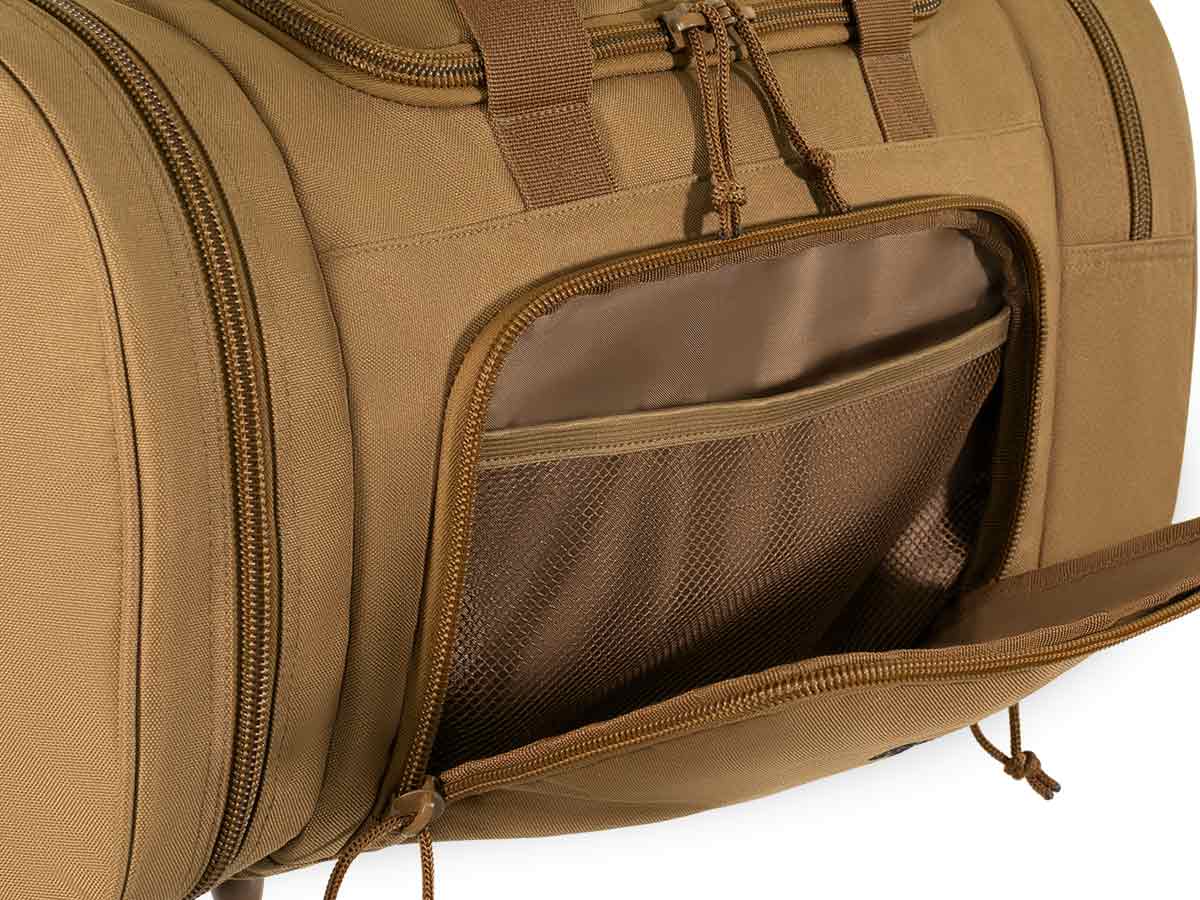 ВелкроСумка ShotTime Сarryall 32л — универсальный выбор для тех, кто ищет вместительное и надёжное решение для поездок или активного отдыха. Объём сумки 32л, она относительно компактна и удобна, а её масса составляет около 1060 г. Выполнена из прочного материала Polyester 600D с полиуретановым покрытием и подкладкой из 210D нейлона, что обеспечивает водостойкость и долговечность. Молнии изготовлены из нержавеющей стали с нейлоновым шнуром, и на всех основных отделениях основное, фронтальное и боковые отделения установлены двойные бегунки, а на карманах внутри боковых отделений — одиночные молнии. Прочные ABS-фастексы, пряжки и зажимы выполнены также, как и основной материал, в цвете койот.