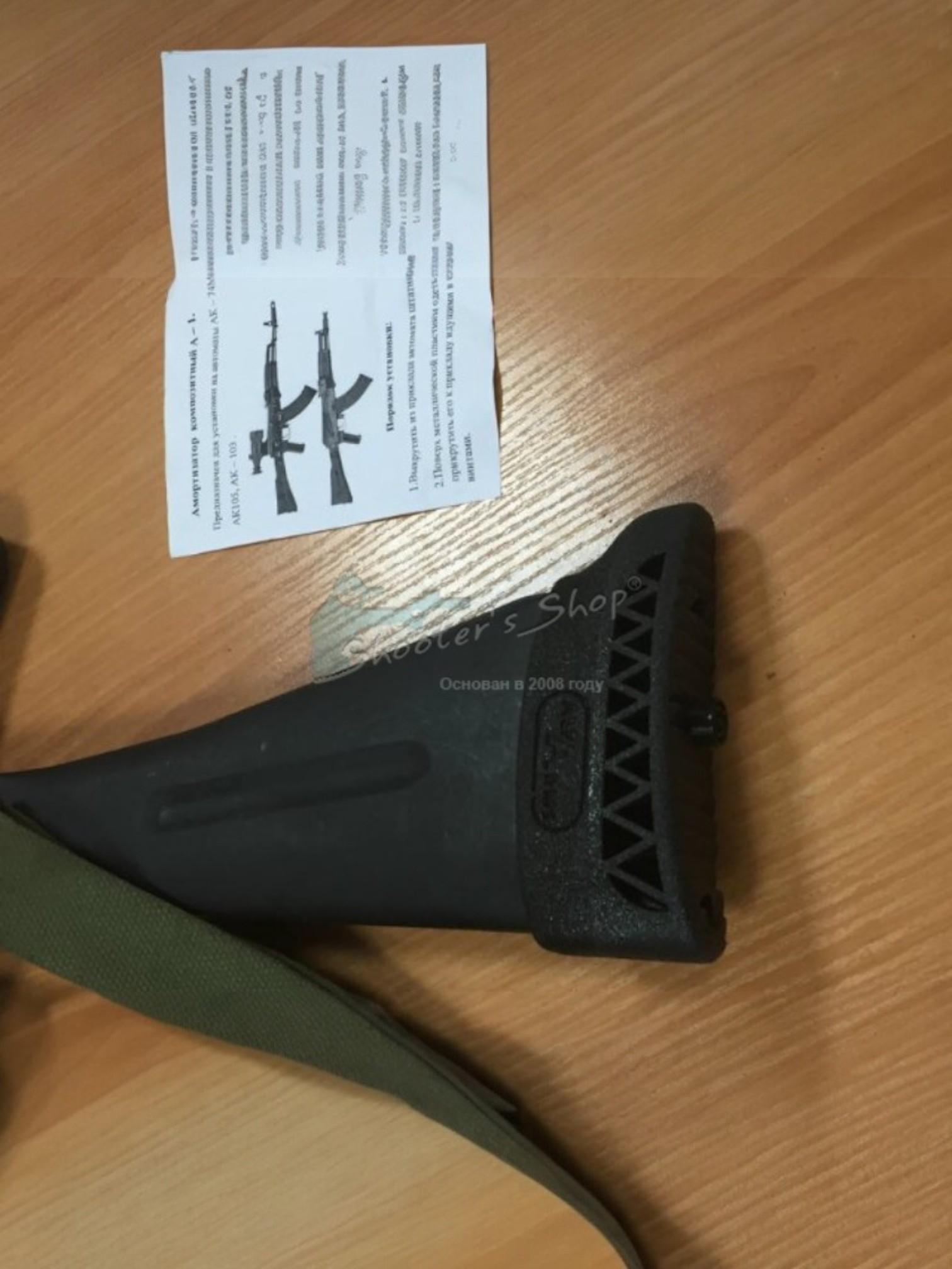 Предназначен для установки на автоматы семейства АК с пластиковым прикладом и полуавтоматические карабины "Сайга", созданные на их базе. Увеличивает общую длину приклада, недостаточную для многих стрелков, на 3,5 см, снижает влияние отдачи на точность стрельбы. Не препятствует складыванию приклада в походное положение.