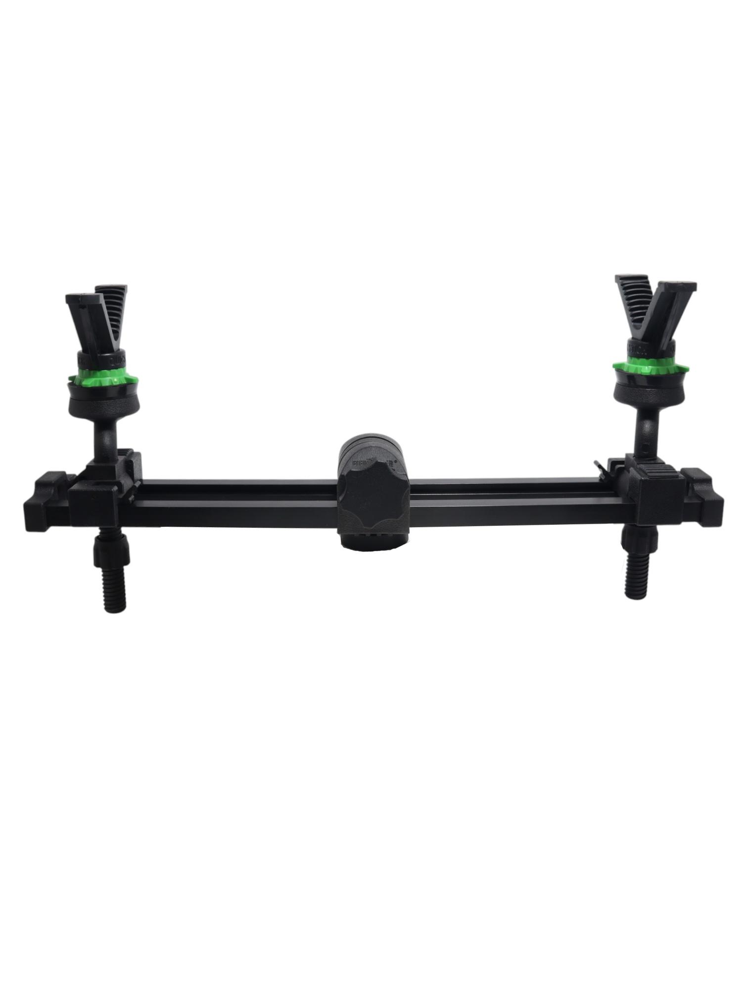 V-образные стойки вращаются на 360° и оснащены универсальным креплением под оптические приборы с резьбой 1/4″-20 и 3/8″ — можно установить бинокль, дальномер или камеру для записи выстрелов.