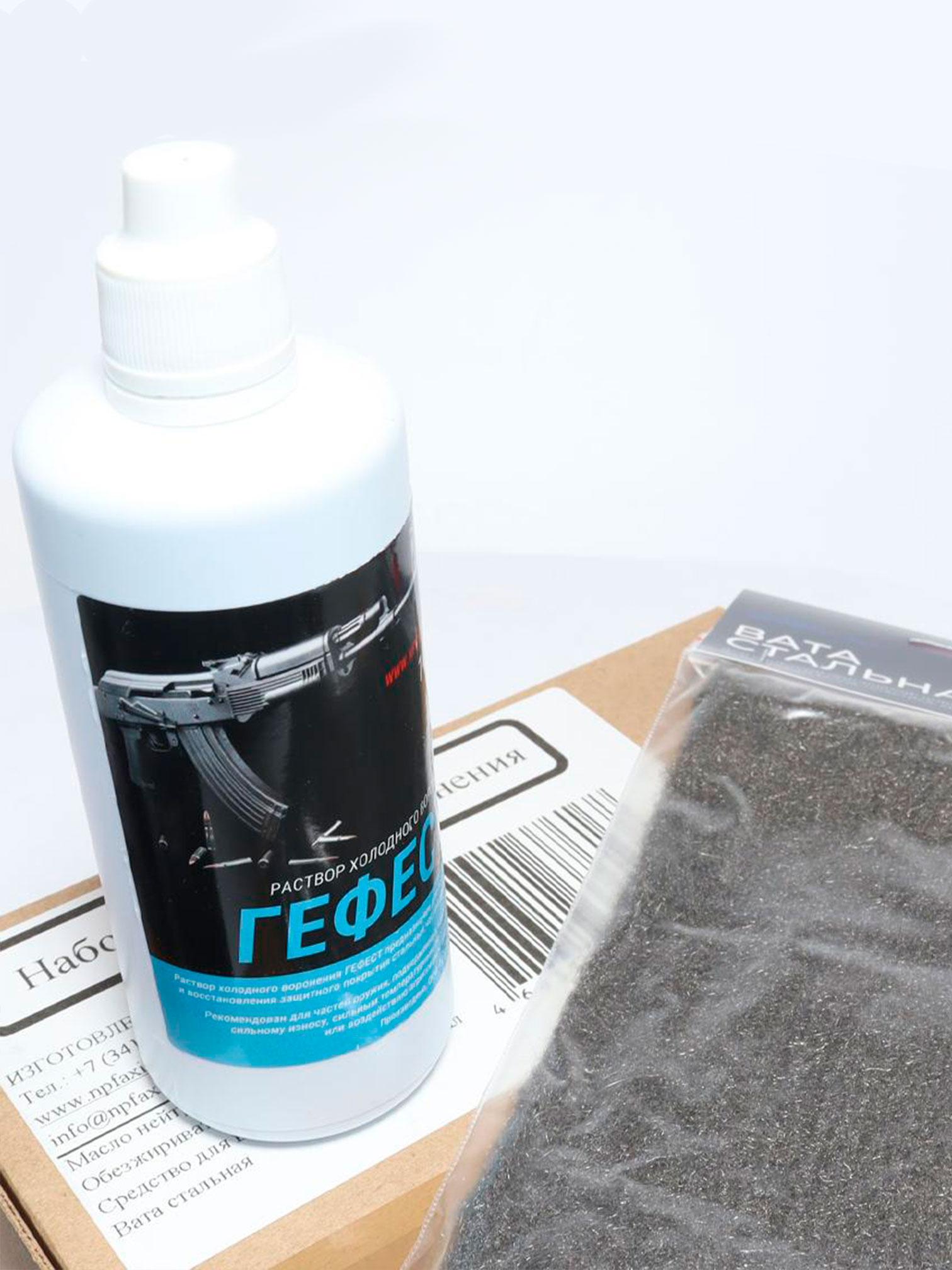 Воронение холодное Гефест, набор (140 мл, вата стальная, обезжириватель, масло)