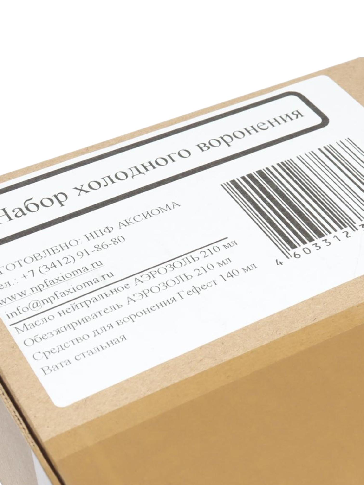 Воронение (Gun Blue)Рекомендуется для областей оружия, подверженных высокому износу, температурным перепадам или воздействию агрессивной среды. Набор разработан для нанесения воронения на подготовленную поверхность. Для удаления старого воронения рекомендуется использовать средства для удаления ржавчины и старого воронения, а также абразивные материалы.