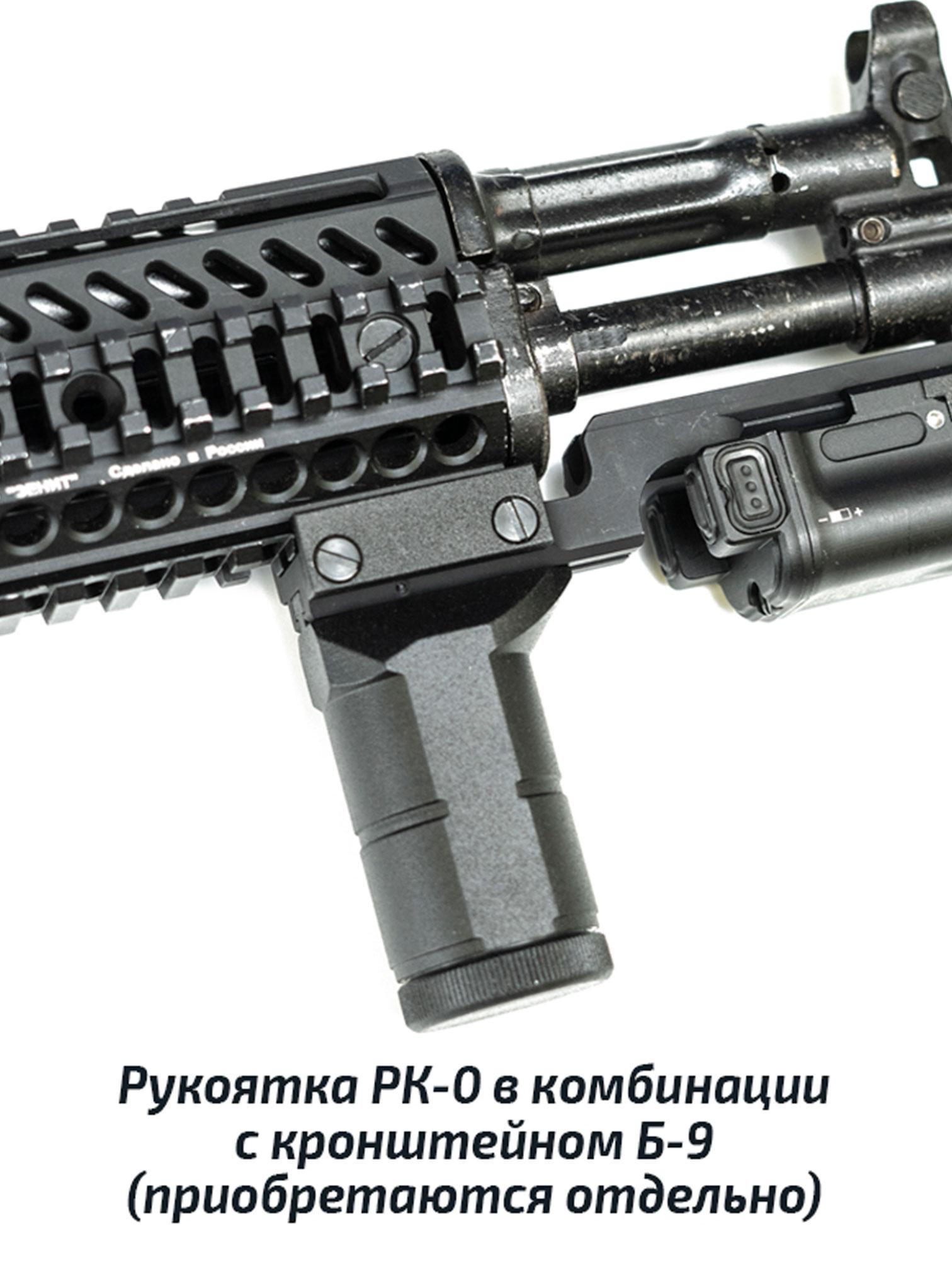 Алюминиевый сплав D16TРукоятка РК-0 устанавливается на нижнюю планку "Пикатинни" цевья Б-10 ( Б-11 ) или на планку Б-9 из комлекта "Классика" и служит для оперативного управления оружием при стрельбе.